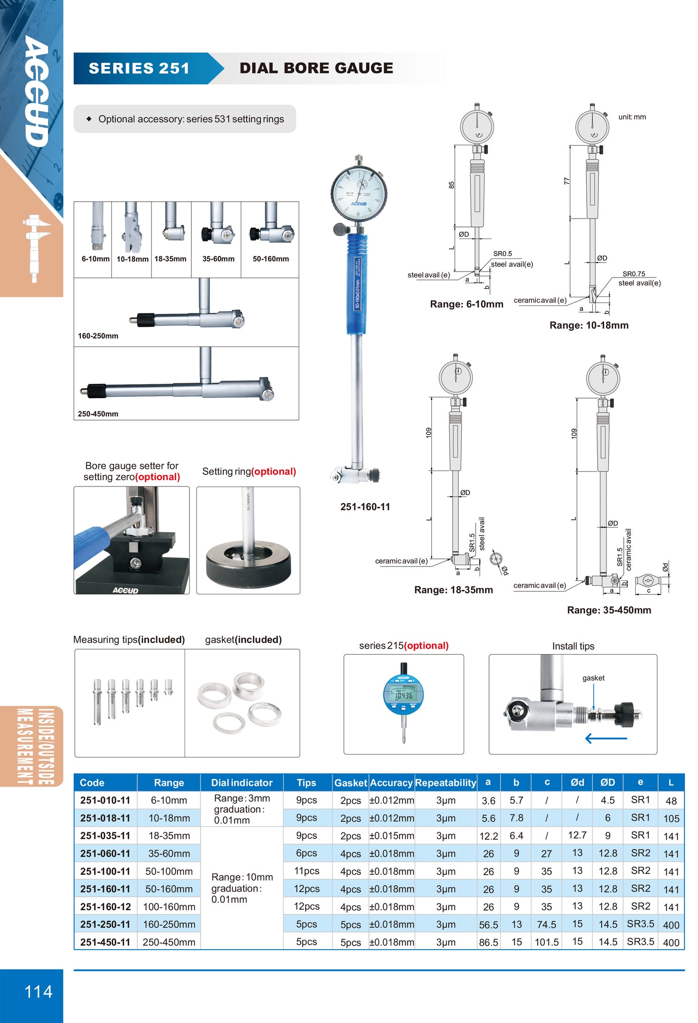 Os comparadores de diâmetro interno (também conhecidos como súbito) da série 251 são projetados para medições precisas de diâmetros internos, garantindo alta exatidão e confiabilidade.