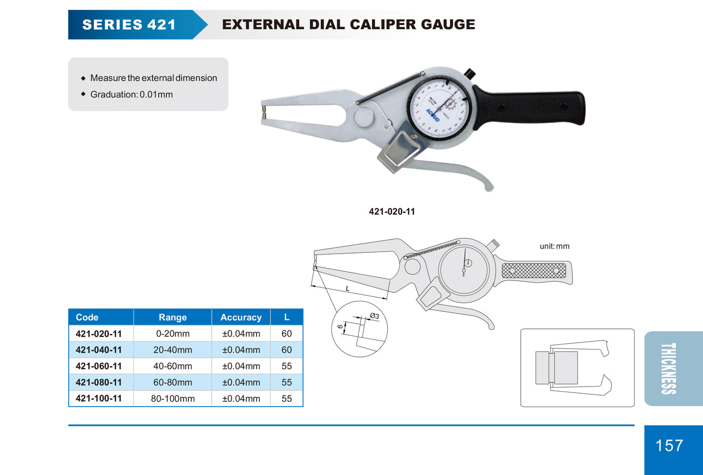 O Medidor Externo com Relógio da Série 421 da ACCUD foi projetado para medições externas com alta precisão e leitura analógica. Ideal para uso em ambientes industriais e de controle dimensional.