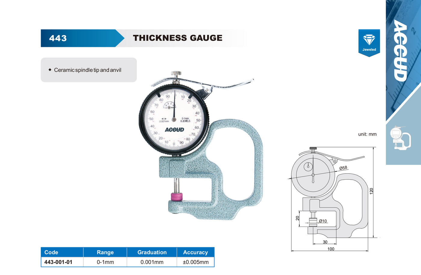 O Medidor de Espessura com Relógio da Série 443 da ACCUD é uma ferramenta de alta precisão para medições manuais de espessura, ideal para ambientes que exigem confiabilidade e leitura analógica clara. Suas pontas de cerâmica oferecem alta resistência ao desgaste e garantem medições consistentes ao longo do tempo.