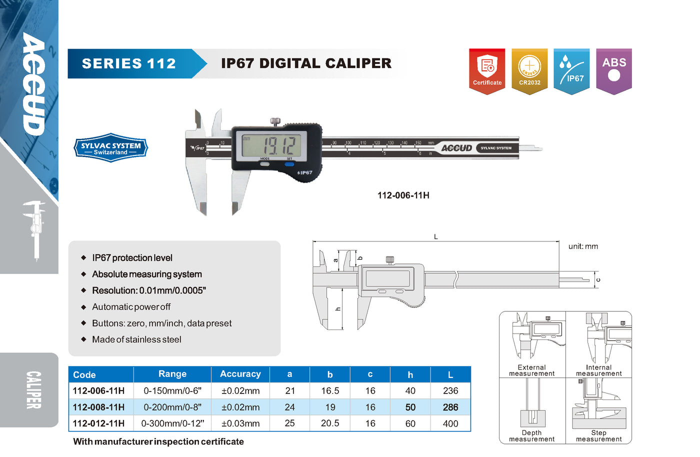 | 112-012-11H | 0-300mm (0-12"") | ±0,03mm | 400 |