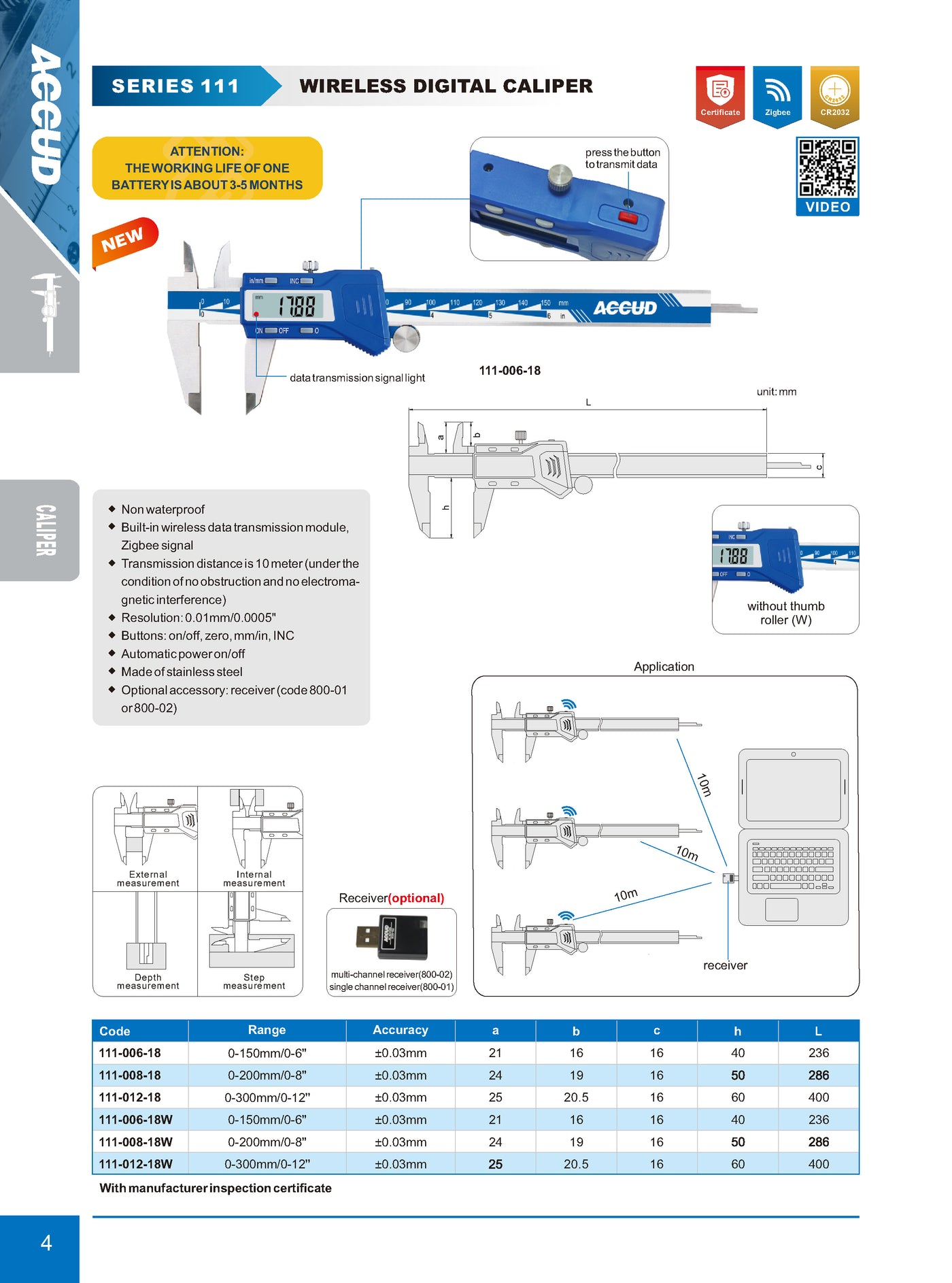 | 111-008-18W | 0-200mm | ±0,03mm |
