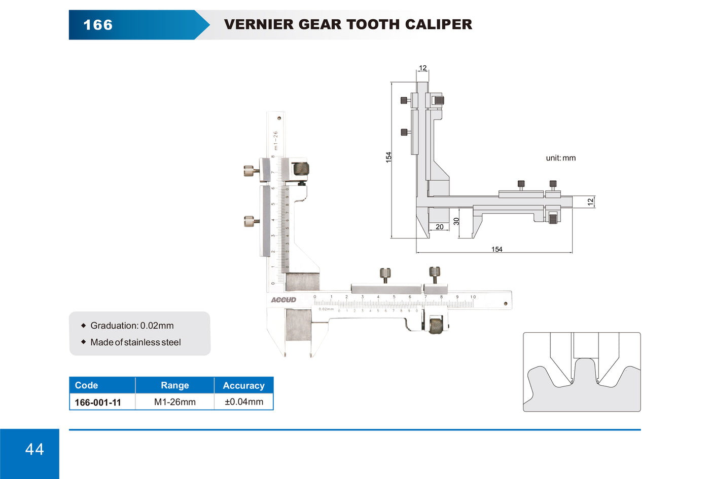 O Paquímetro Analógico para Dentes de Engrenagem Série 166 é projetado para medições precisas em dentes de engrenagens, garantindo um ajuste exato e controle de qualidade superior. Com construção robusta em aço inoxidável e graduação de 0,02mm, é ideal para aplicações industriais que exigem alta precisão.