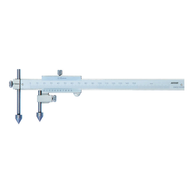 O Paquímetro Accud Série 161 foi desenvolvido para medição entre centros de furos em superfícies planas ou com desnível. Construído em aço inoxidável, oferece excelente precisão e acabamento fosco na escala para fácil leitura.