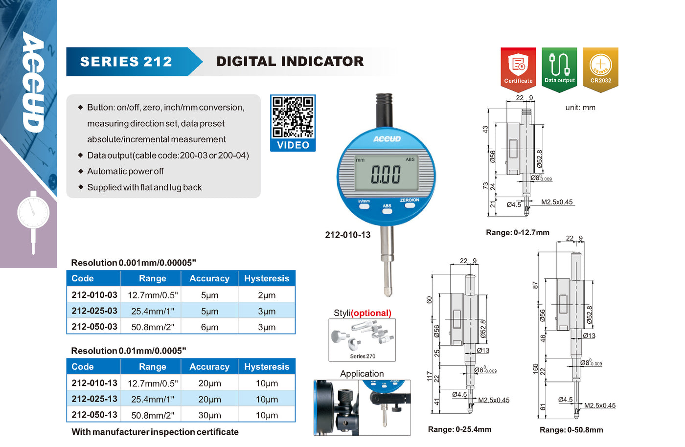 - 212-010-13 – Faixa: 12,7mm (0,5"") | Precisão: 20µm