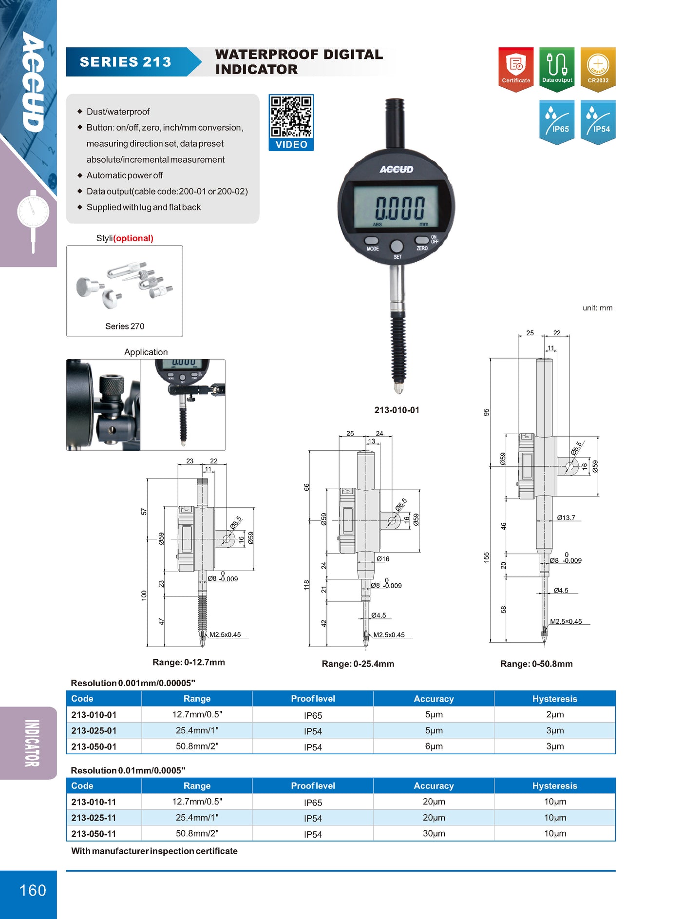 - 213-025-01 – Faixa: 25,4mm (1") | Precisão: 5µm | Proteção: IP54