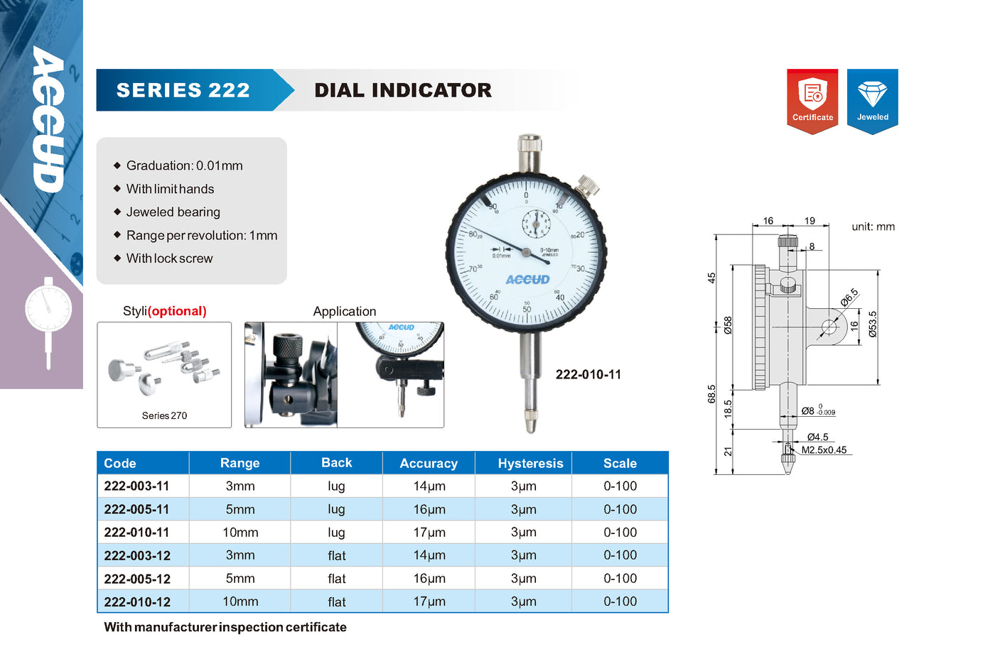 Os relógios comparadores da série 222 são instrumentos de alta precisão, ideais para medições detalhadas em diversas aplicações.