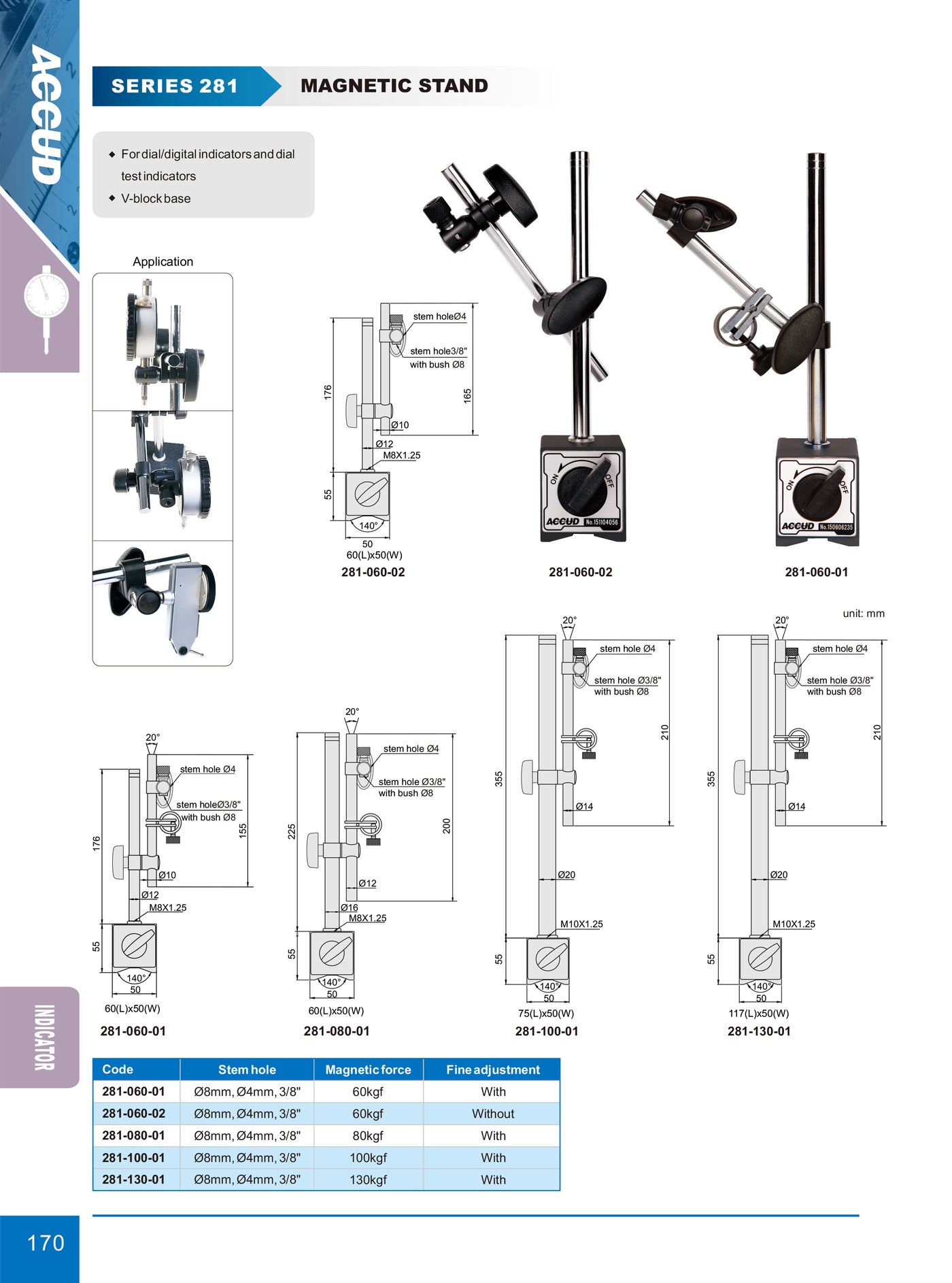 O Suporte Magnético Ajustável Universal 281 é projetado para oferecer estabilidade e precisão ao segurar relógios comparadores e relógios apalpadores, garantindo medições confiáveis e seguras.