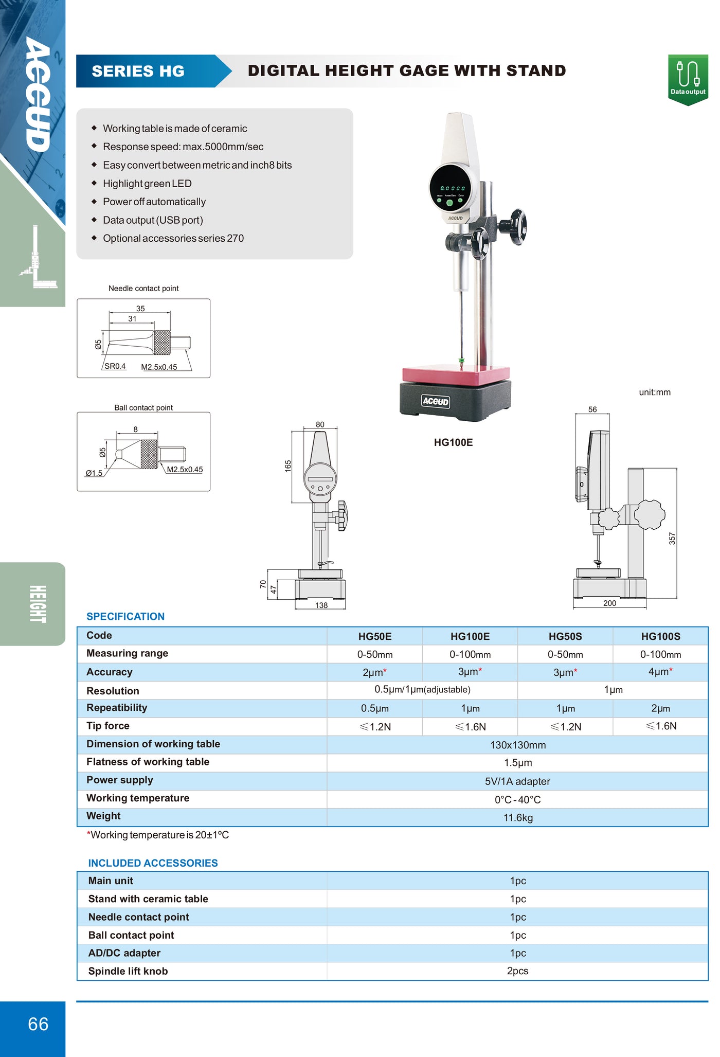 - - HG100E | 0-100mm | Exatidão: ±3 μm | Resolução 0,5/1,0 μm (ajustável)