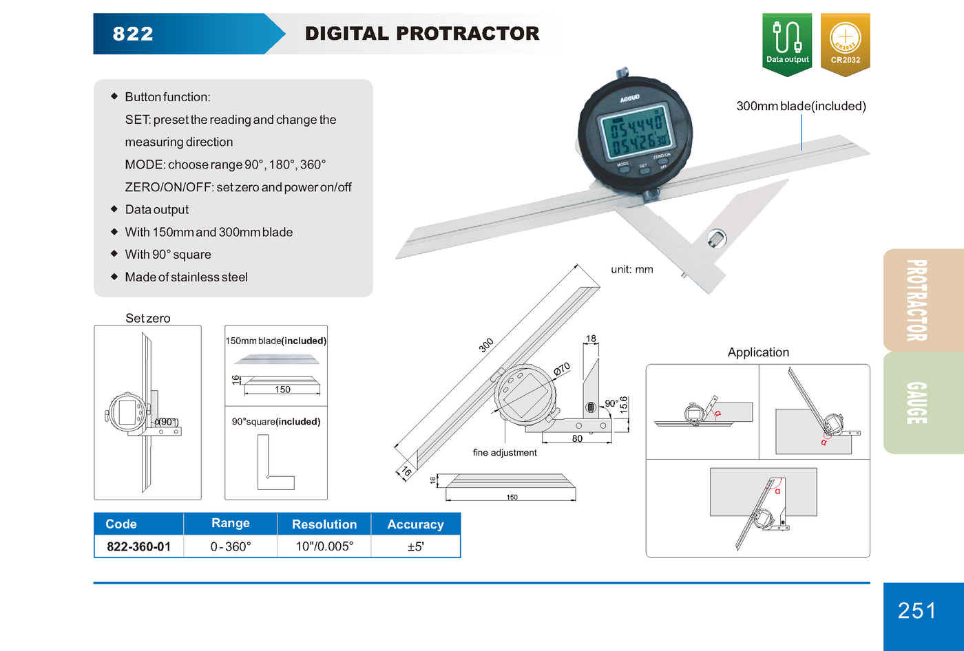 Transferidor Digital 822 0°-360° c/ Lâminas de 150mm e 300mm