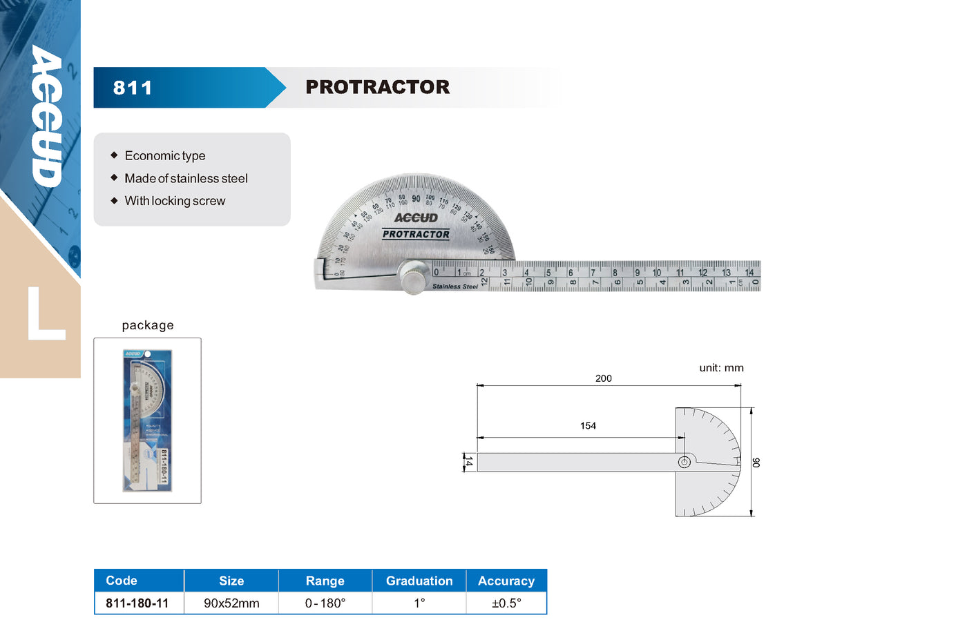O Transferidor Mecânico ACCUD Série 811 é uma ferramenta econômica e prática para medição de ângulos. Fabricado em aço inoxidável, é resistente e durável, ideal para uso em oficinas, marcenarias e indústrias em geral.