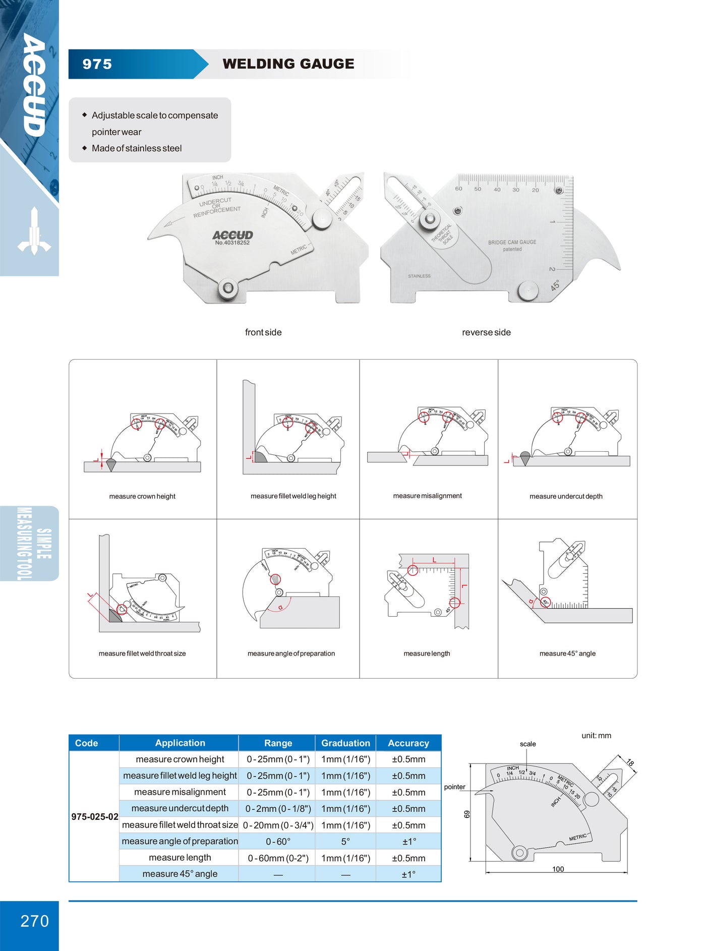 O Calibrador de Solda da Série 975 é uma ferramenta essencial para medições precisas de todos os parâmetros de soldagem, antes e depois do processo, garantindo conformidade e qualidade nas juntas soldadas.