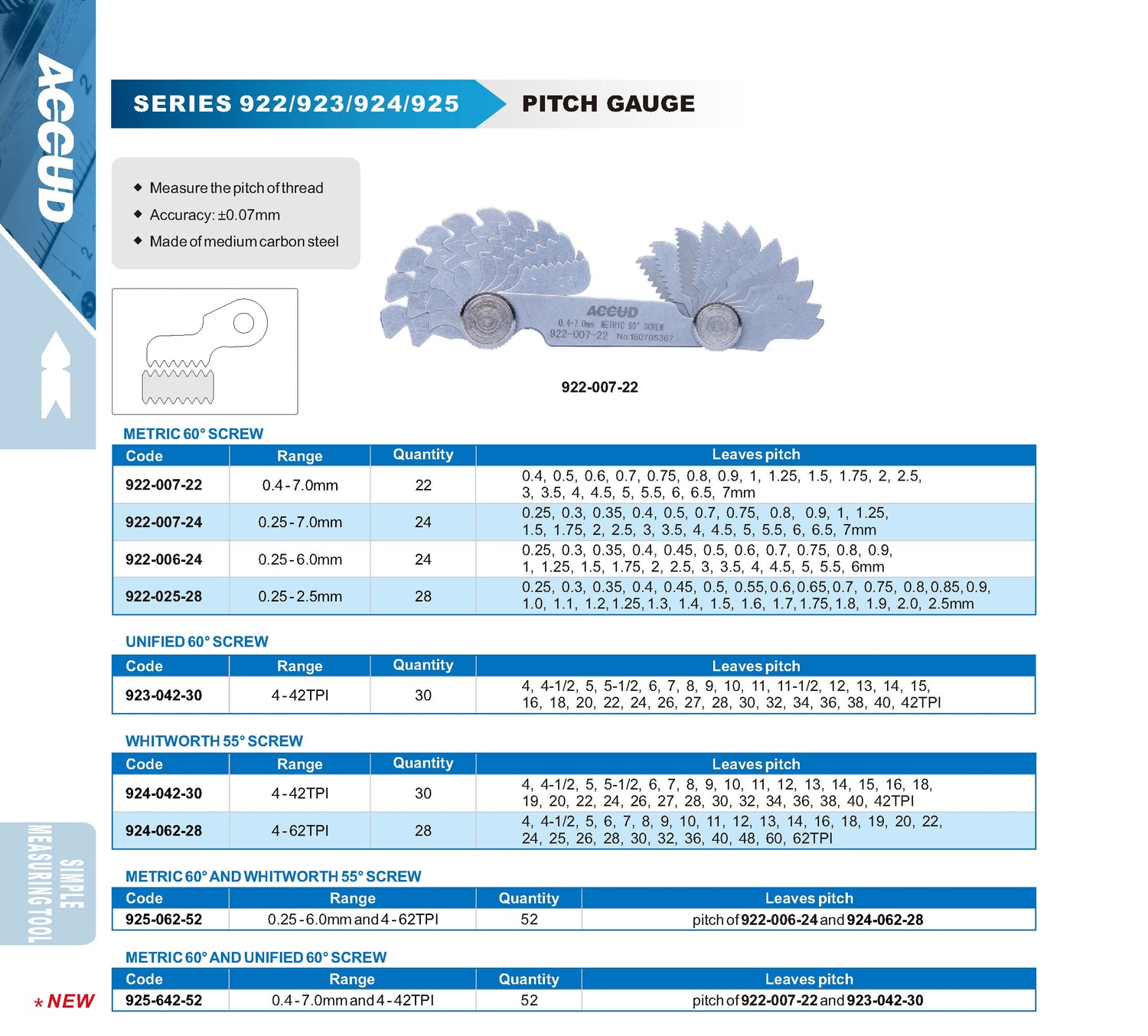 O Calibre de Rosca da Série 925 é uma ferramenta essencial para a medição precisa do passo de roscas em diversos tipos de roscas métricas e imperiais.