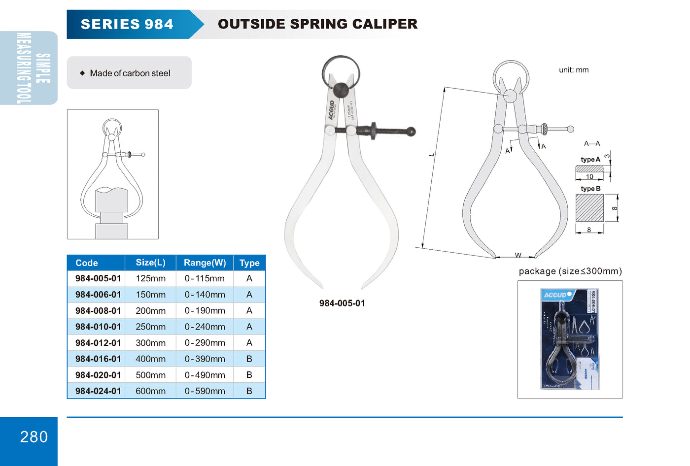 O Compasso Externo com Mola da Série 984 da ACCUD é indicado para medições externas precisas, como o diâmetro externo de peças cilíndricas. Fabricado em aço carbono, garante resistência e longa vida útil mesmo em ambientes industriais exigentes.