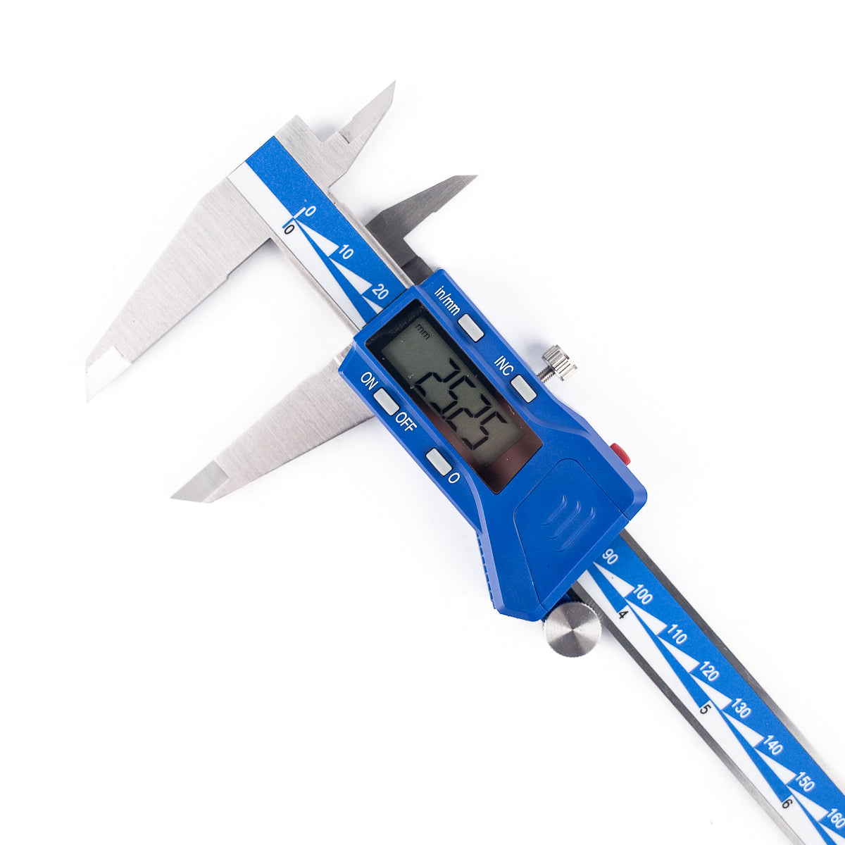 - Botões de controle: Liga/Desliga, Zero, mm/pol, INC